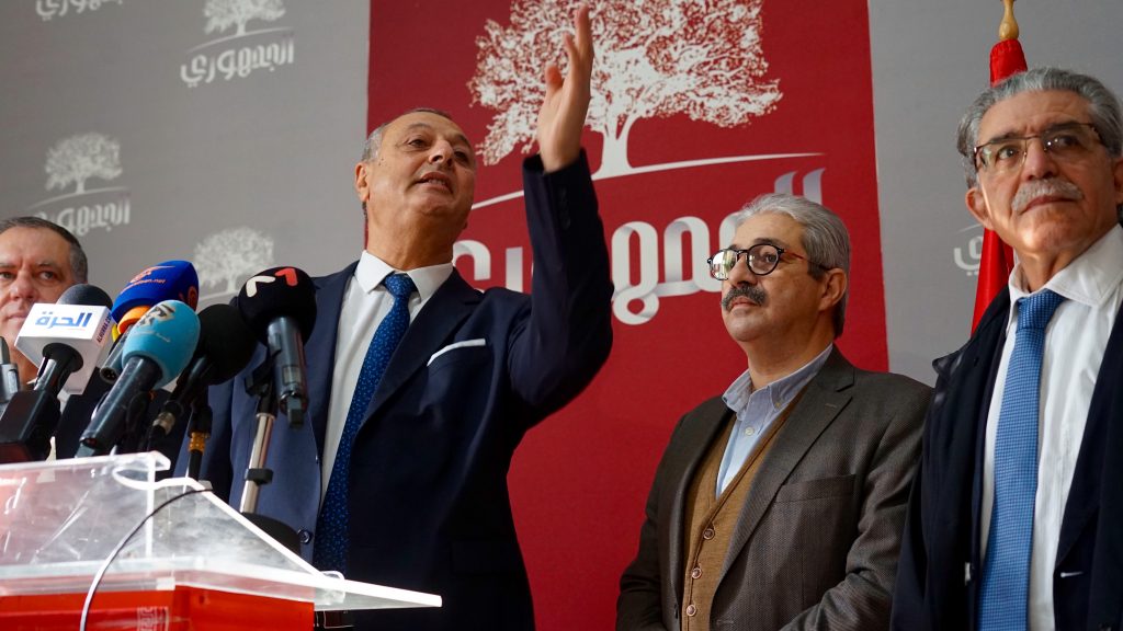 He joined Al Joumhouri’s political bureau when it was created in April 2012. In February 2017, he replaced Maya Jribi as party leader.